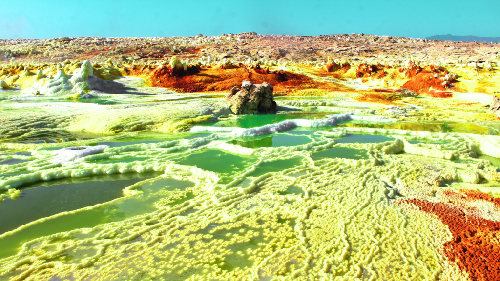 This is the Dallol hydrothermal system, a geological anomaly that appears more extraterrestrial than terrestrial.