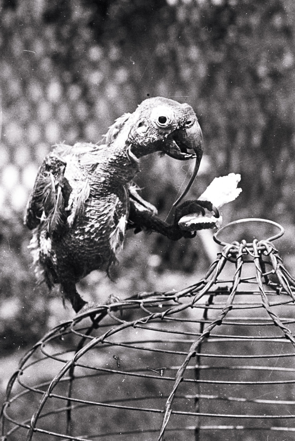 Despite his frailty, he ruled the front verandah from his cage. When other birds harassed him, he would squawk, “One at a time, gentlemen, please.” His most famous lament, often shrieked while flapping his naked wings, was, “If I had another bloody feather, I’d fly!”