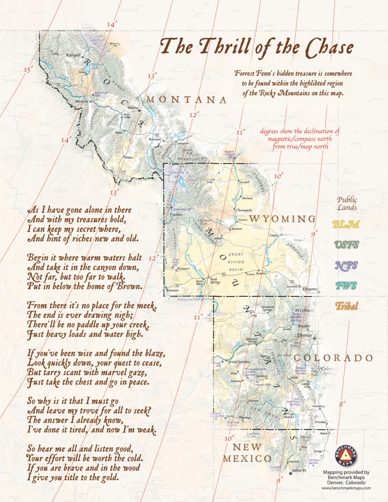 They deciphered the stanzas and scrutinized maps. Many hunters sold their possessions and spent their life savings to fund repeated trips into the dangerous terrain. The chest sat north of Santa Fe and more than 5,000 feet (1,524 meters) above sea level, hidden among the pine trees and sagebrush.