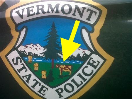 The official Vermont State Police crest traditionally features a solid red cow standing against a backdrop of snowy mountains. In February 2012, a state trooper inspecting a police vehicle noticed a peculiar detail on the car’s door decal. The cow in the image was no longer solid red.
