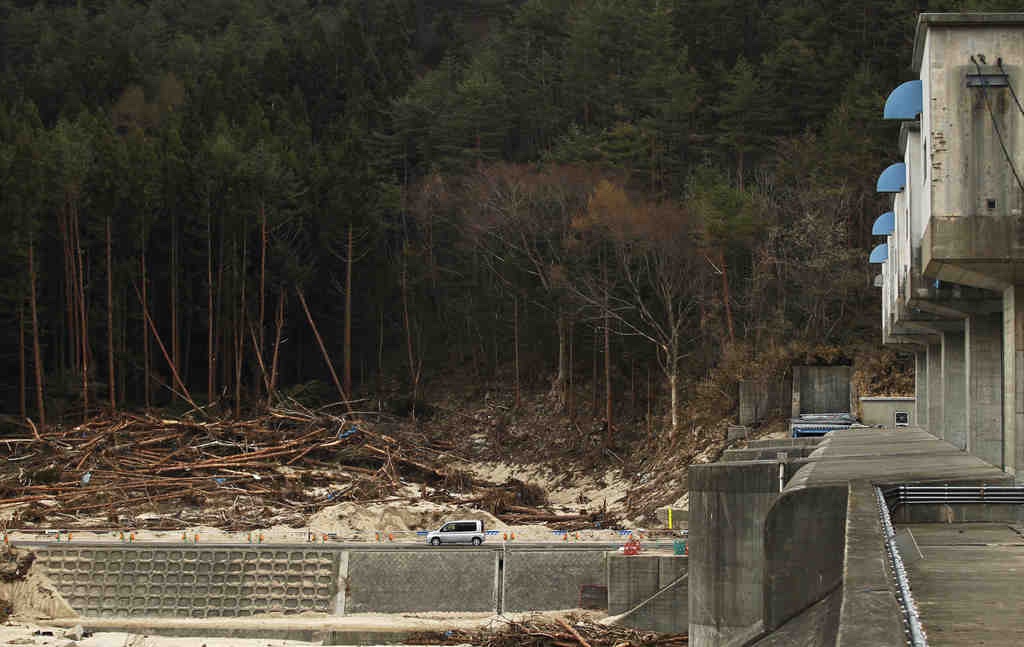 On March 11, 2011, a 9.0 magnitude earthquake generated ocean waves reaching heights of 20 meters (66 feet). As the water approached Fudai, workers lowered the massive panels of the floodgate. Some ocean water did flow over the top of the barrier, but the concrete structure successfully held back the main force of the ocean.