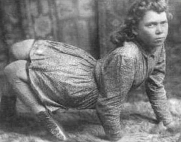 This rare orthopedic condition meant her knees curved backward. She found it most comfortable to walk on all four limbs. None of her siblings shared this physical trait. During the late 19th century, sideshows dominated American entertainment, and promoters soon noticed her unique mobility.